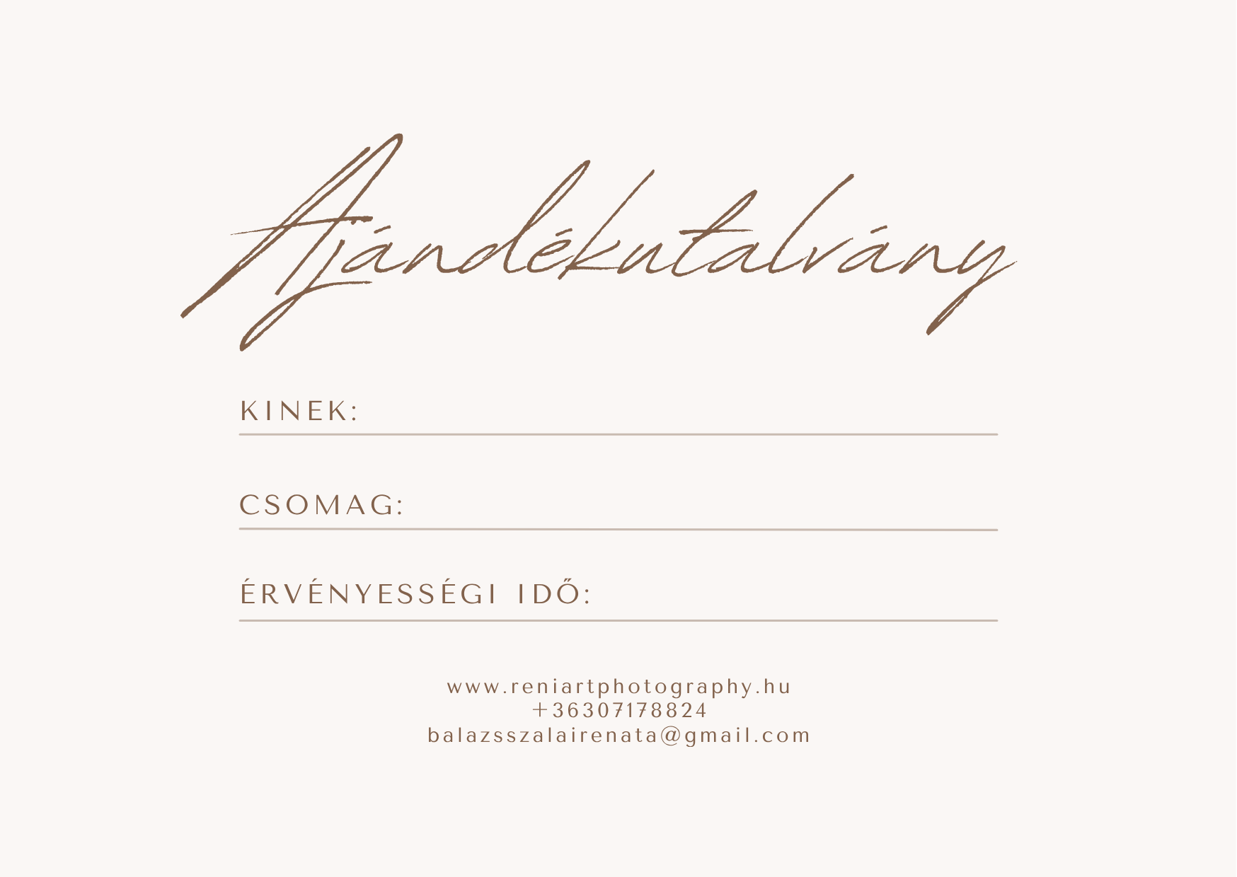 Az utalvány bármelyik fotózási csomagra vagy tetszőleges összegre kérhető.